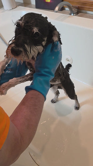Make bath time faster, easier, and more enjoyable for both you and your dog. These silicone bathing gloves feature built-in scrubbing bristles that gently remove dirt, loosen shedding fur, and create a rich lather with very little shampoo. Simply slip them on, wet your dog, add a drop of soap, and massage—your pup gets a relaxing spa treatment while you get a quicker, cleaner bath.