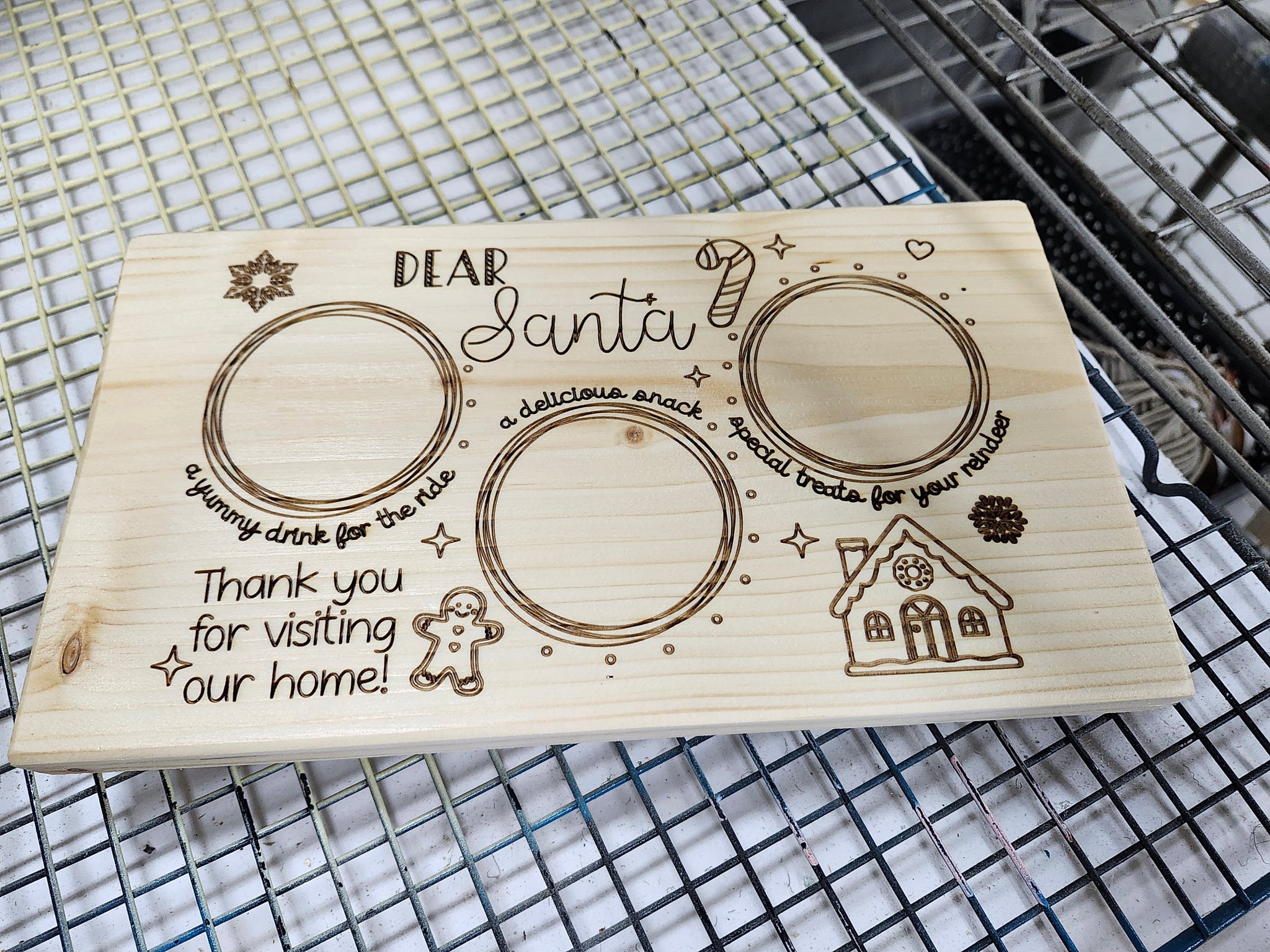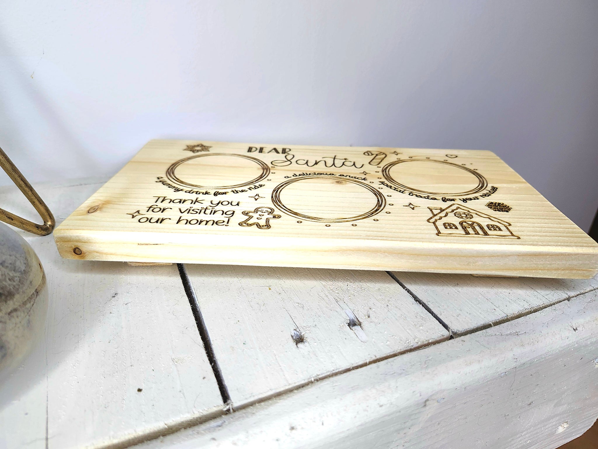 Santa's Christmas plate is a festive, decorative dish designed to hold cookies and treats left out for Santa on Christmas Eve. It features a place for reindeer snacks, nice glass of milk or hot cocoa and warm cookie for Santa. It's the perfect size for a little side table or coffee table. Santa will surely appreciate the kindness of taking care of him and his helpers:)